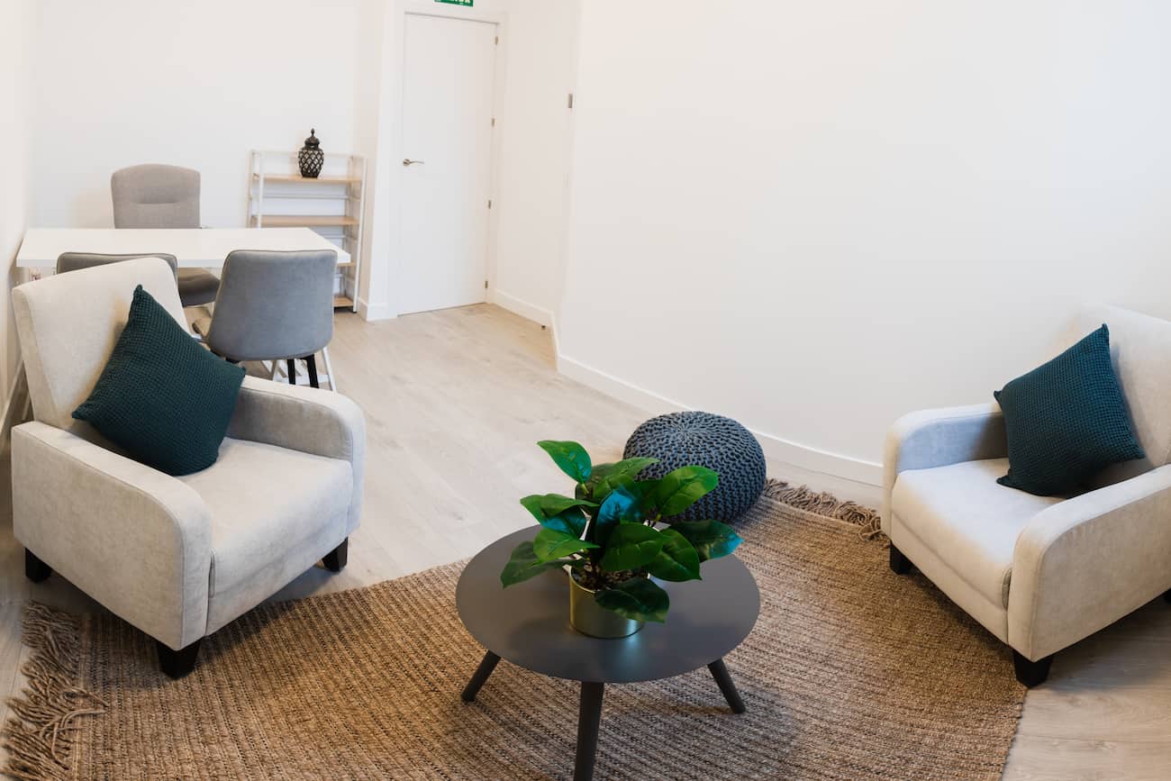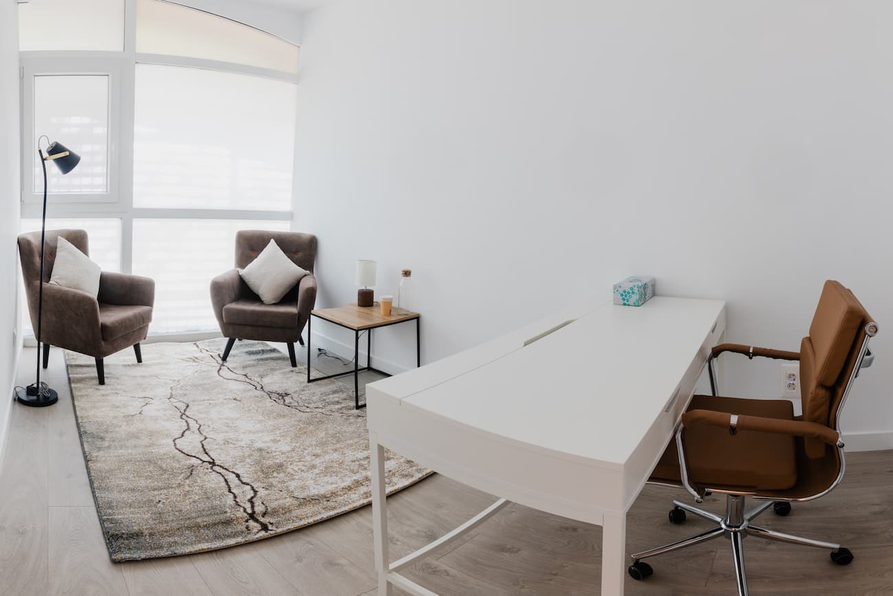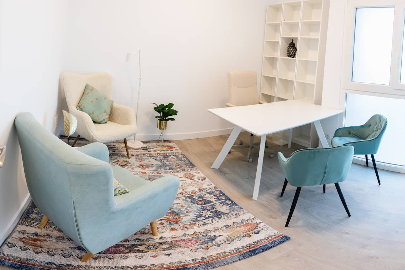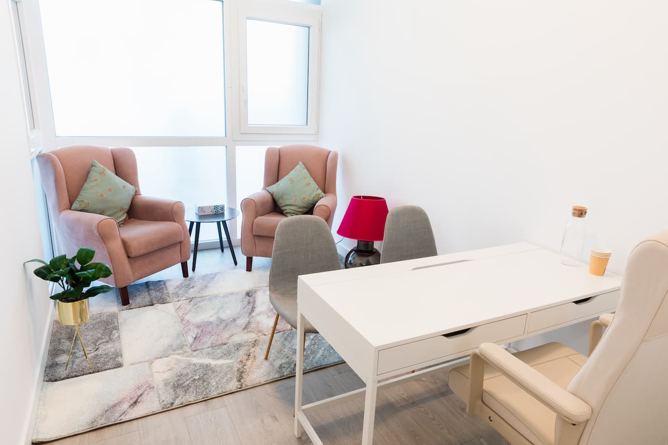Nuestros despachos cuentan con todas las funcionalidades necesarias para el desarrollo de la actividad terapéutica. Son despachos bonitos y elegantes, con una decoración cuidada al detalle para crear un ambiente acogedor tanto para el profesional como para el paciente. Sabemos que el entorno es muy importante en terapia.