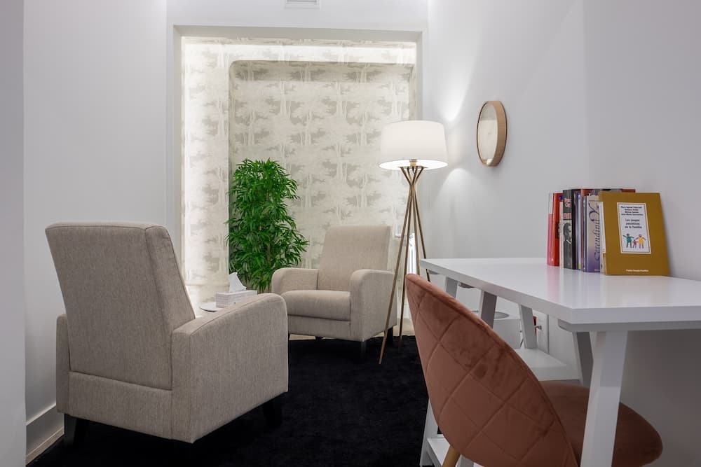 Nuestros despachos cuentan con todas las funcionalidades necesarias para el desarrollo de la actividad terapéutica. Son despachos bonitos y elegantes, con una decoración cuidada al detalle para crear un ambiente acogedor tanto para el profesional como para el paciente. Sabemos que el entorno es muy importante en terapia.